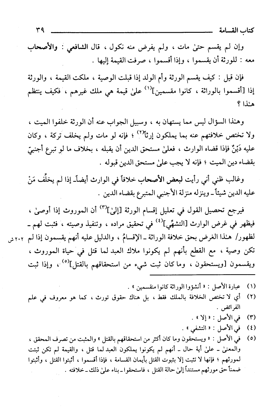 (5) في الأصل: " ويستحقون وما كان أكثر من استحقاقهم بالقتل " والمثبت من تصرف المحقق، والمعنى -على أية حال- أنهم لم يكونوا يملكون العبد لما قتل، والقيمة لم تكن ثبتت لمورثهم؛ فإنها لا تثبت إلا بثبوت القتل بأيمان القسامة، فإذا أقسموا، أثبتوا القتل، وأثبتوا ضمناً حق مورثهم مستنداً إلى حالة القتل، فاستحقوا -بناء على ذلك- خلافته.