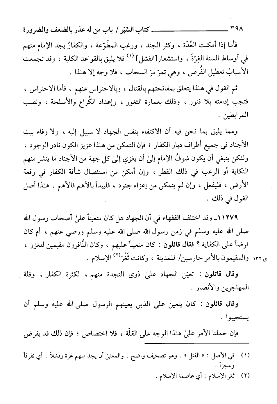 وقال قائلون: تعيّن الجهاد على ذوي النجدة منهم، لكثرة الكفار، وقلة المهاجرين والأنصار.