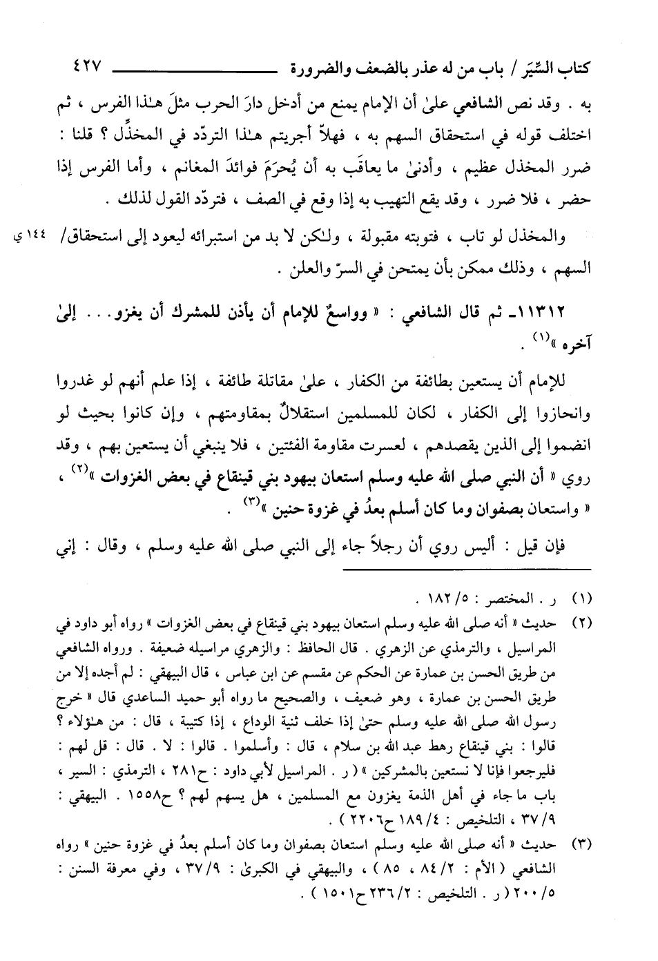 11312 - ثم قال الشافعي: " وواسعٌ للإمام أن يأذن للمشرك أن يغزو ... إلى آخره" (1).