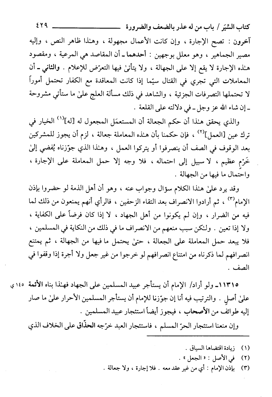 11315 - ولو أراد الإمام أن يستأجر عبيد المسلمين على الجهاد فهذا بناه الأئمة على أصلٍ. والترتيب فيه أنا إن جوّزنا للإمام أن يستأجر المسلمين الأحرار على ما صار إليه طوائف من الأصحاب، فيجوز أيضاً استئجار عبيد المسلمين.
