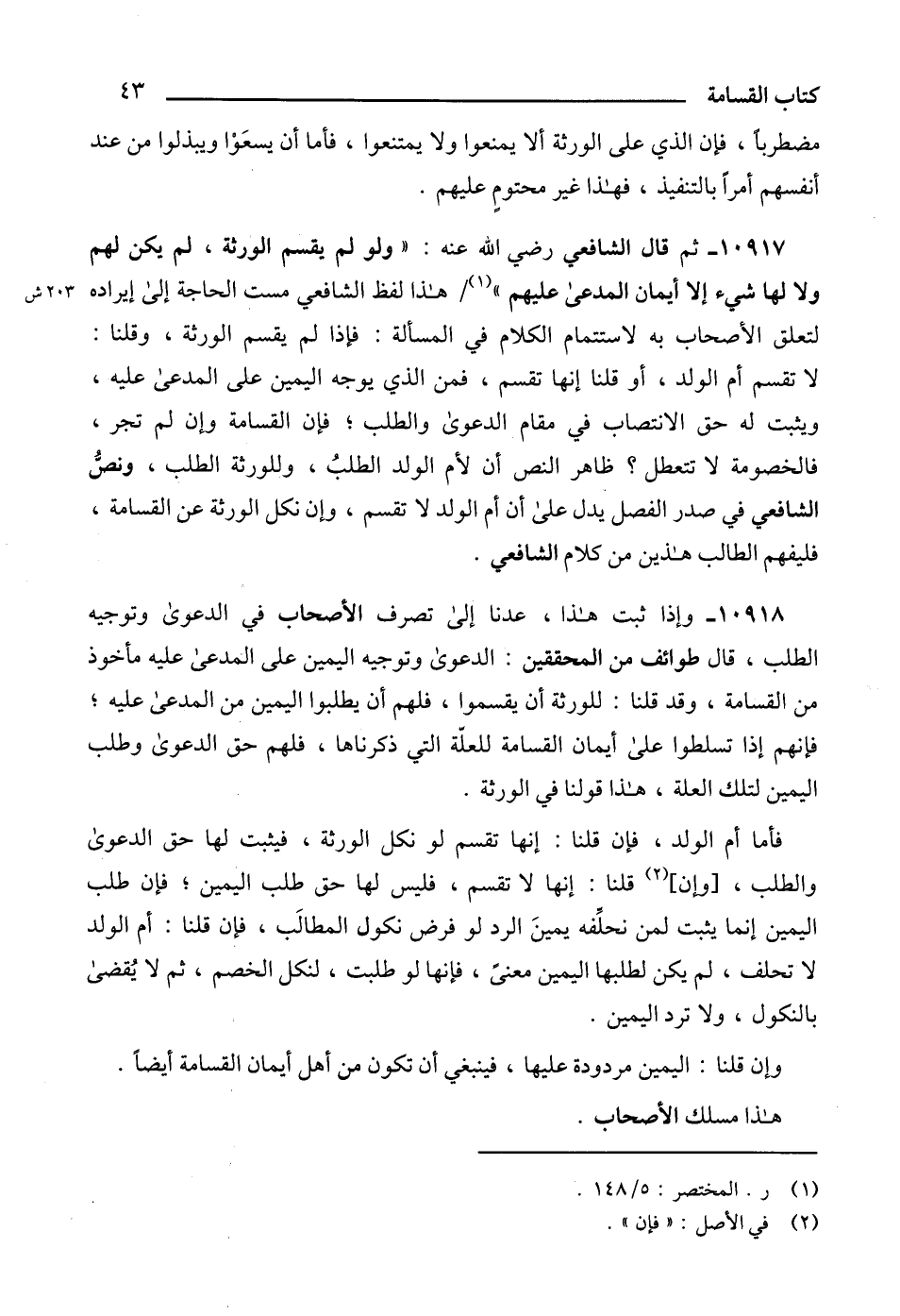 10918 - وإذا ثبت هذا، عدنا إلى تصرف الأصحاب في الدعوى وتوجيه الطلب، قال طوائف من المحققين: الدعوى وتوجيه اليمين على المدعى عليه مأخوذ من القسامة، وقد قلنا: للورثة أن يقسموا، فلهم أن يطلبوا اليمين من المدعى عليه؛ فإنهم إذا تسلطوا على أيمان القسامة للعلّة التي ذكرناها، فلهم حق الدعوى وطلب اليمين لتلك العلة، هذا قولنا في الورثة.