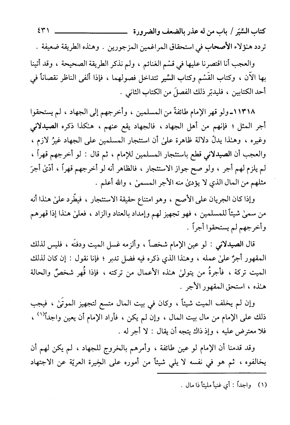 والعجب أنا اقتصرنا عليها في قسْم الغنائم، ولم نذكر الطريقة الصحيحة، وقد أتينا بها الآن، وكتاب القَسْم وكتاب السِّير تتداخل فصولهما، فإذا ألفى الناظر نقصاناً في أحد الكتابين، فليدبّر ذلك الفصلَ من الكتاب الثاني.