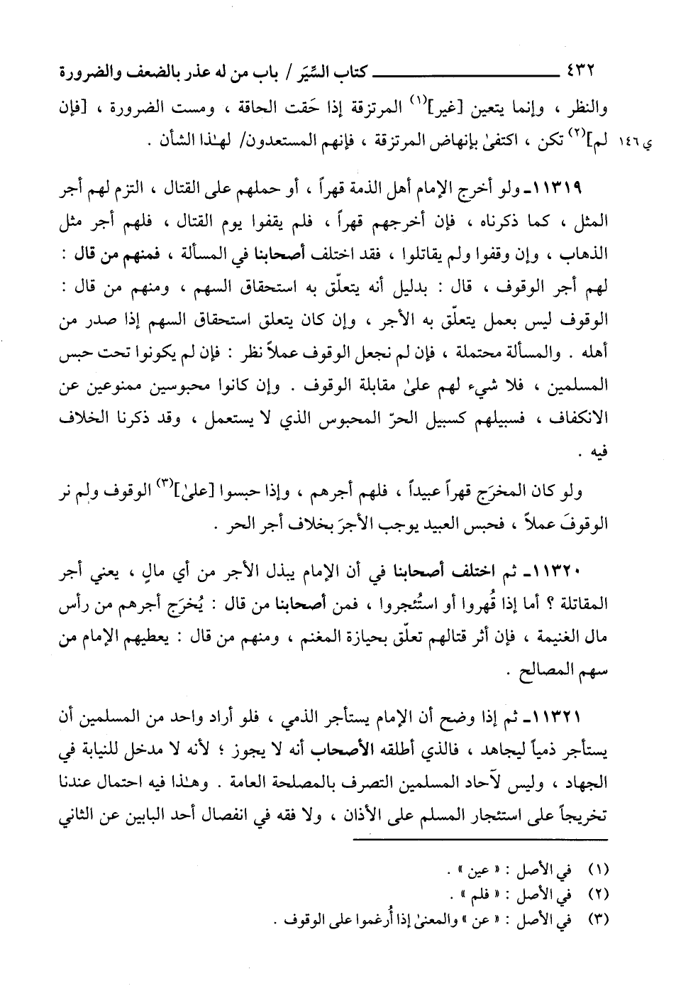11325 - ثم اختلف أصحابنا في أن الإمام يبذل الأجر من أي مالٍ، يعني أجر المقاتلة؟ أما إذا قُهروا أو استُئجروا، فمن أصحابنا من قال: يُخرَج أجرهم من رأس مال الغنيمة، فإن أثر قتالهم تعلّق بحيازة المغنم، ومنهم من قال: يعطيهم الإمام من سهم المصالح.