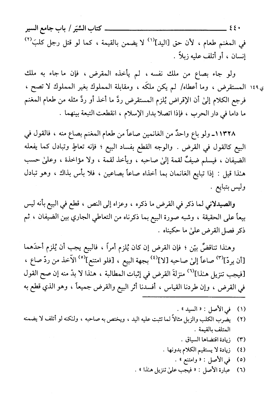 ولو جاء بصاع من ملك نفسه، لم يأخذه المقرض، فإن ما جاء به ملك المستقرض، وما أعطاه لم يكن ملكَه، ومقابلة المملوك بغير المملوك لا تصح، فرجع الكلام إلى أن الإقراض يُلزم المستقرض ردَّ ما أخذ أو ردَّ مثله من طعام المغنم ما داما في دار الحرب، فإذا اتصلا بدار الإسلام، انقطعت التبعة بينهما.