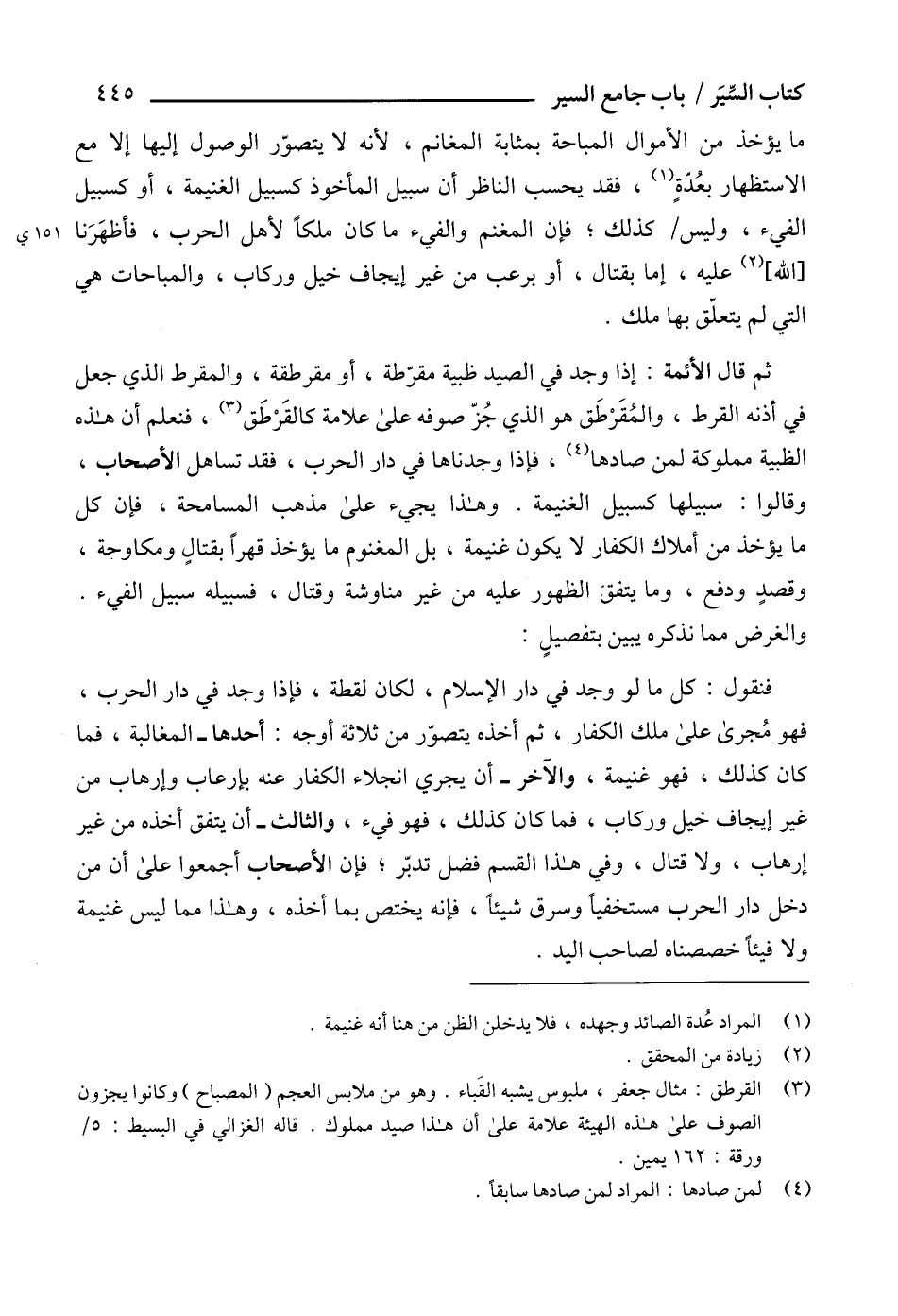 (3) القرطق: مثال جعفر، ملبوس يشبه القَباء. وهو من ملابس العجم (المصباح) وكانوا يجزون الصوف على هذه الهيئة علامة على أن هذا صيد مملوك. قاله الغزالي في البسيط: 5/ ورقة: 162 يمين.