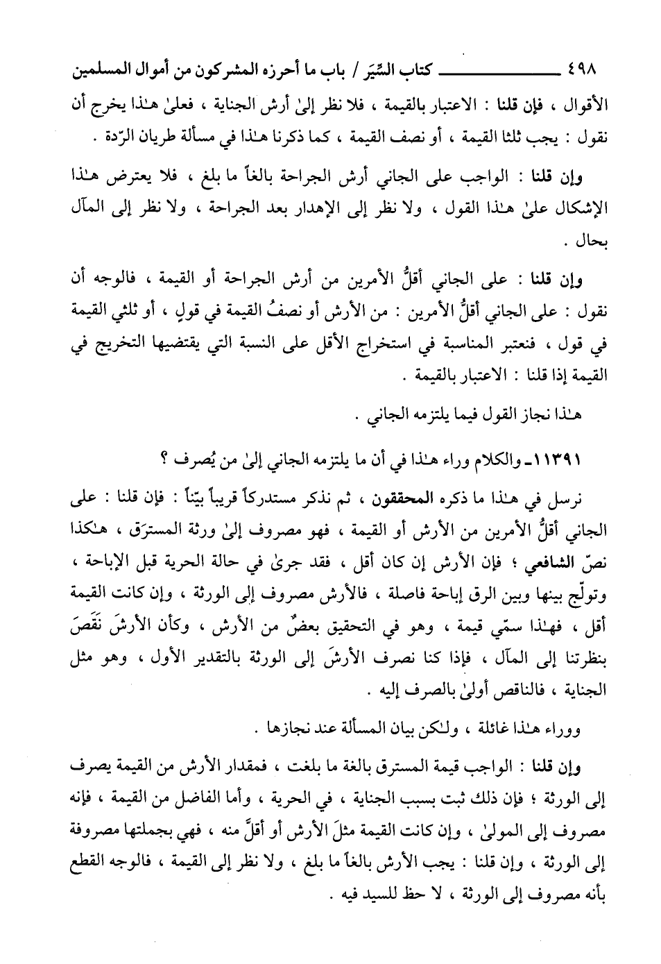 11391 - والكلام وراء هذا في أن ما يلتزمه الجاني إلى من يُصرف؟ نرسل في هذا ما ذكره المحققون، ثم نذكر مستدركا قريباً بيّناً: فإن قلنا: على الجاني أقلُّ الأمرين من الأرش أو القيمة، فهو مصروف إلى ورثة المسترَق، هكذا نصّ الشافعي؛ فإن الأرش إن كان أقل، فقد جرى في حالة الحرية قبل الإباحة، وتولّج بينها وبين الرق إباحة فاصلة، فالأرش مصروف إلى الورثة، وإن كانت القيمة أقل، فهذا سمّي قيمة، وهو في التحقيق بعضٌ من الأرش، وكأن الأرشَ نَقَصَ بنظرتنا إلى المآل، فإذا كنا نصرف الأرشَ إلى الورثة بالتقدير الأول، وهو مثل الجناية، فالناقص أولى بالصرف إليه.