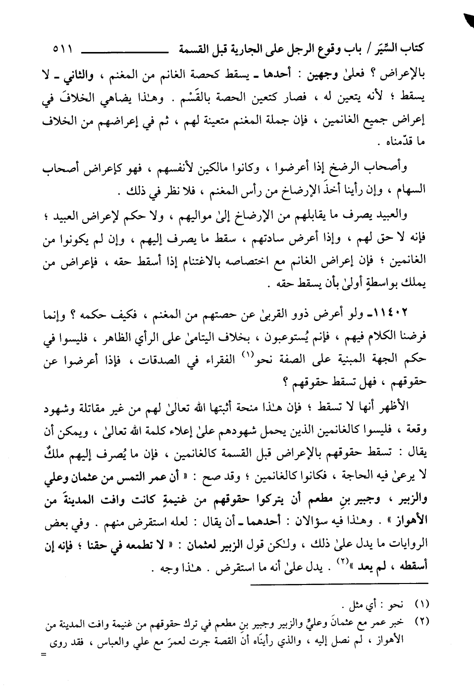 (2) خبر عمر مع عثمانَ وعليٍّ والزبير وجبير بنِ مطعم في ترك حقوقهم من غنيمة وافت المدينة من الأهواز، لم نصل إليه، والذي رأينَاه أن القصة جرت لعمرَ مع علي والعباس، فقد روى=