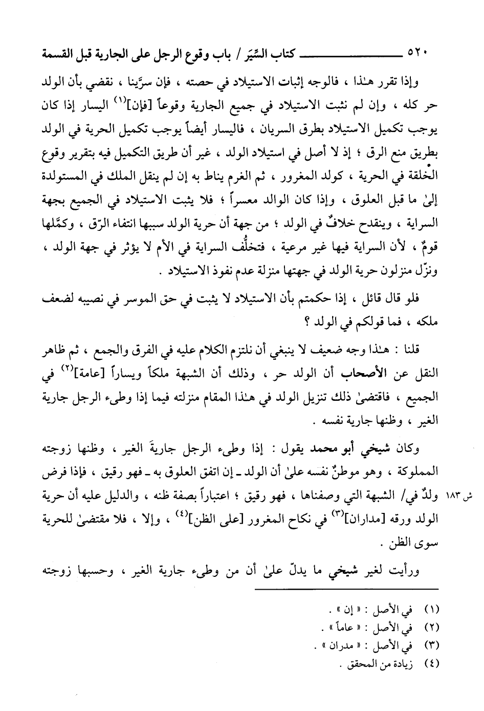 وكان شيخي أبو محمد يقول: إذا وطىء الرجل جاريةَ الغير، وظنها زوجته المملوكة، وهو موطنٌ نفسه على أن الولد -إن اتفق العلوق به- فهو رقيق، فإذا فرض ولدٌ في الشبهة التي وصفناها، فهو رقيق؛ اعتباراً بصفة ظنه، والدليل عليه أن حرية الولد ورقه [مداران] (3) في نكاح المغرور [على الظن] (4)، وإلا، فلا مقتضى للحرية سوى الظن.