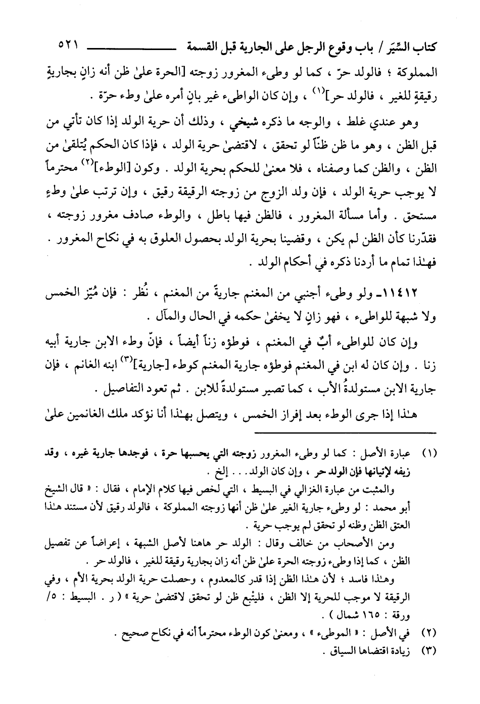 وإن كان للواطىء أبٌ في المغنم، فوطؤه زناً أيضاً، فإنّ وطء الابن جارية أبيه زنا. وإن كان له ابن في المغنم فوطؤه جارية المغنم كوطء [جارية] (3) ابنه الغانم، فإن جارية الابن مستولدةُ الأب، كما تصير مستولدةً للابن. ثم تعود التفاصيل.