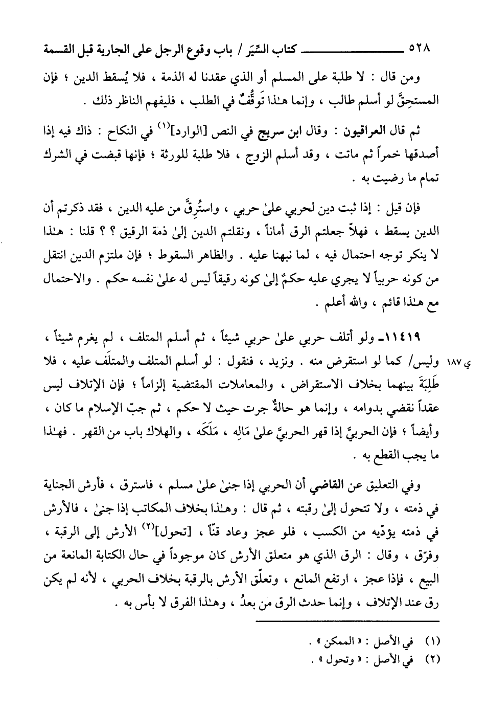 ومن قال: لا طلبة على المسلم أو الذي عقدنا له الذمة، فلا يُسقط الدين؛ فإن المستحِقَّ لو أسلم طالب، وإنما هذا تَوقُّفٌ في الطلب، فليفهم الناظر ذلك.