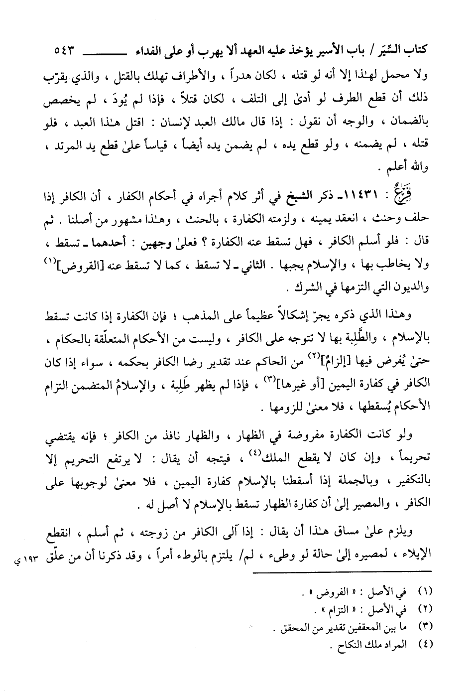 وهذا الذي ذكره يجرّ إشكالاً عظيماً على المذهب؛ فإن الكفارة إذا كانت تسقط بالإسلام، والطَّلِبة بها لا تتوجه على الكافر، وليست من الأحكام المتعلّقة بالحكام، حتى يُفرض فيها [إلزامٌ] (2) من الحاكم عند تقدير رضا الكافر بحكمه، سواء إذا كان الكافر في كفارة اليمين [أو غيرها] (3)، فإذا لم يظهر طَلِبة، والإسلامُ المتضمن التزام الأحكام يُسقطها، فلا معنى للزومها.