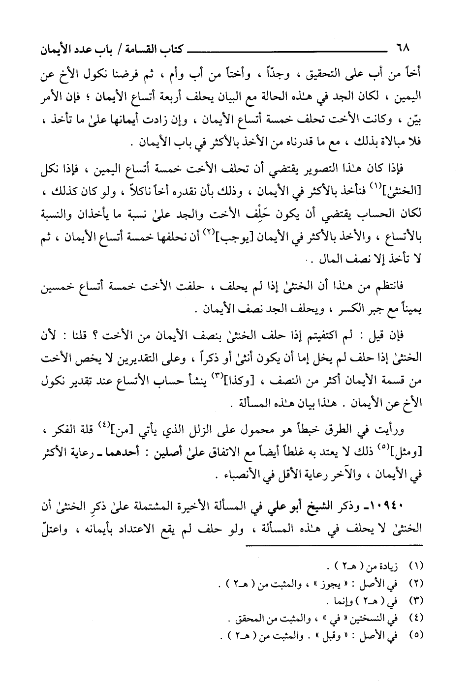 ورأيت في الطرق خبطاً هو محمول على الزلل الذي يأتي [من] (4) قلة الفكر، [ومثل] (5) ذلك لا يعتد به غلطاً أيضاً مع الاتفاق على أصلين: أحدهما - رعاية الأكثر في الأيمان، والآخر رعاية الأقل في الأنصباء.