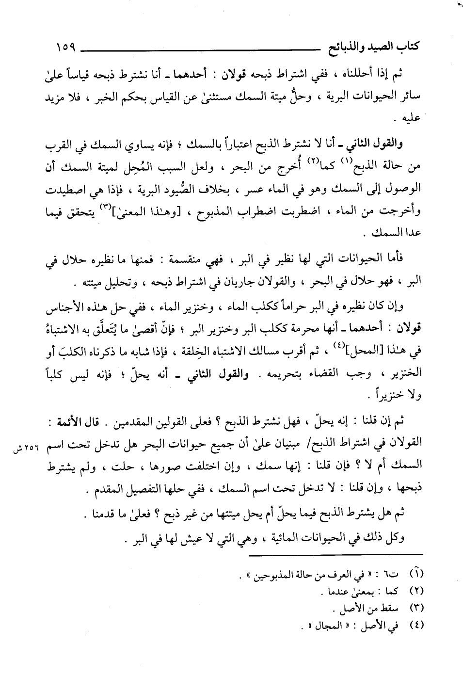 والقول الثاني - أنا لا نشترط الذبح اعتباراً بالسمك؛ فإنه يساوي السمك في القرب من حالة الذبح (1) كما (2) أُخرج من البحر، ولعل السبب المُحِل لميتة السمك أن الوصول إلى السمك وهو في الماء عسر، بخلاف الصُّيود البرية، فإذا هي اصطيدت وأخرجت من الماء، اضطربت اضطراب المذبوح، [وهذا المعنى] (3) يتحقق فيما عدا السمك.