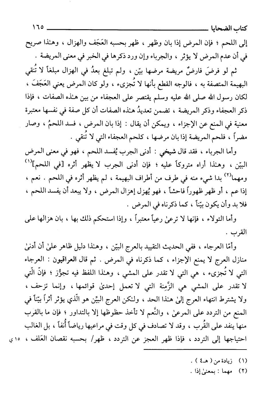 إلى اللحم؛ فإن المرض إذا بان وظهر، ظهر بحسبه العَجَف والهزال، وهذا صريح في أن عدم المرض لا يؤثر، والجرباء وإن ورد ذكرها في الخبر في معنى المريضة.