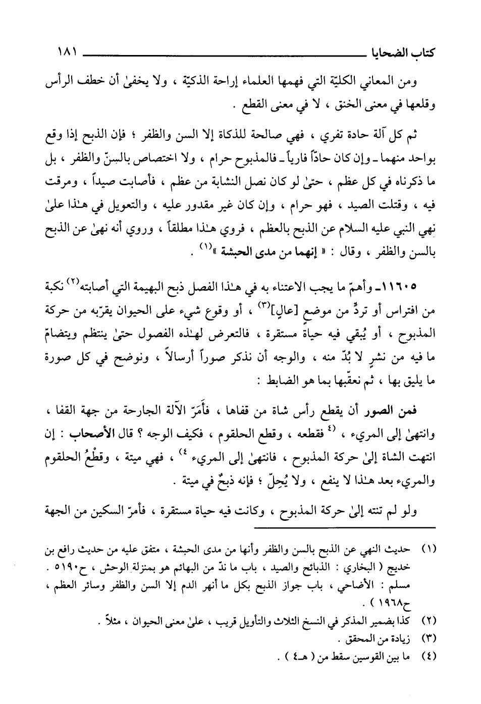 (1) حديث النهي عن الذبح بالسن والظفر وأنها من مدى الحبشة، متفق عليه من حديث رافع بن خديج (البخاري: الذبائح والصيد، باب ما ندّ من البهائم هو بمنزلة الوحش، ح 5190.