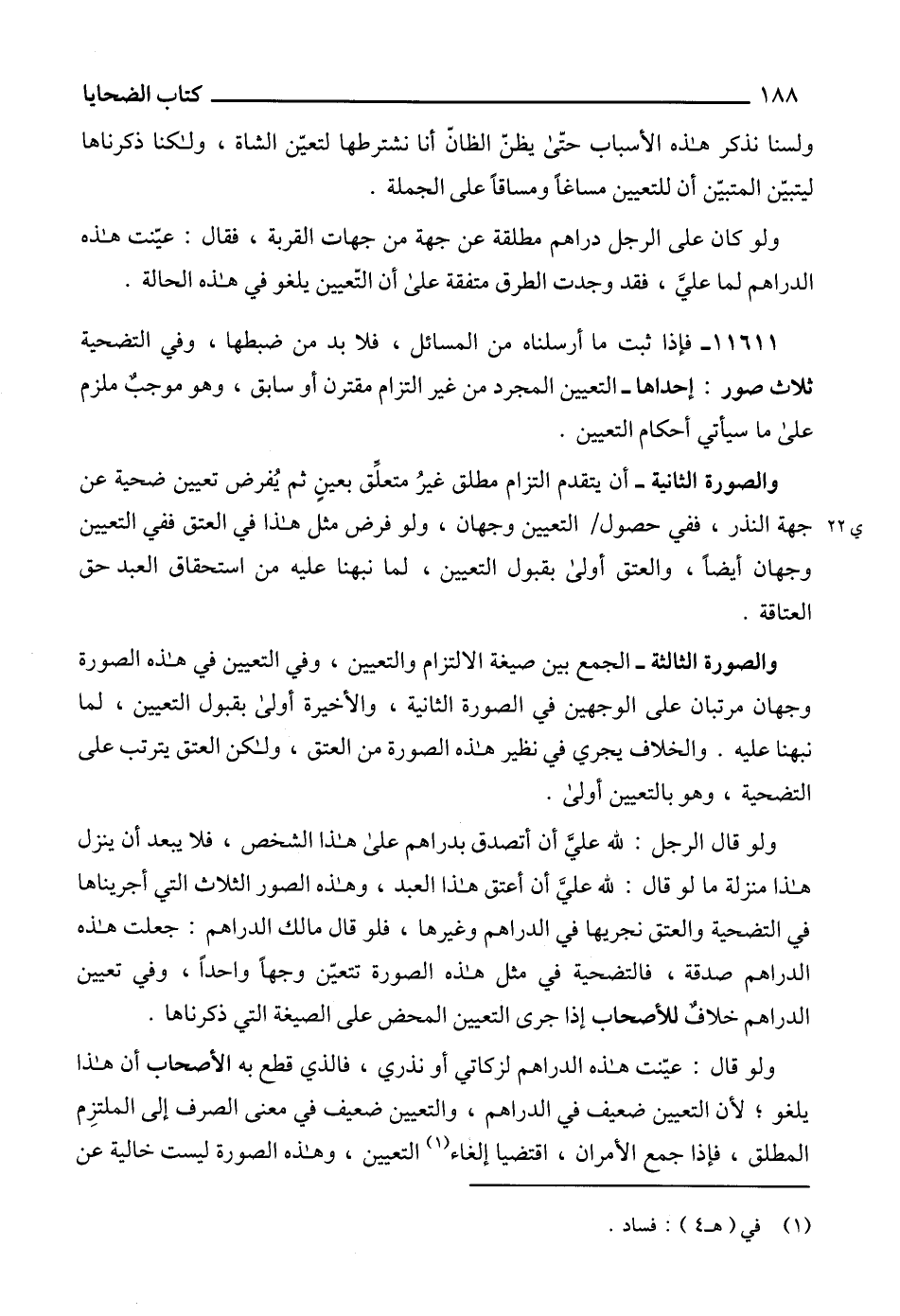 11611 - فإذا ثبت ما أرسلناه من المسائل، فلا بد من ضبطها، وفي التضحية ثلاث صور: إحداها - التعيين المجرد من غير التزام مقترن أو سابق، وهو موجبٌ ملزم على ما سيأتي أحكام التعيين.