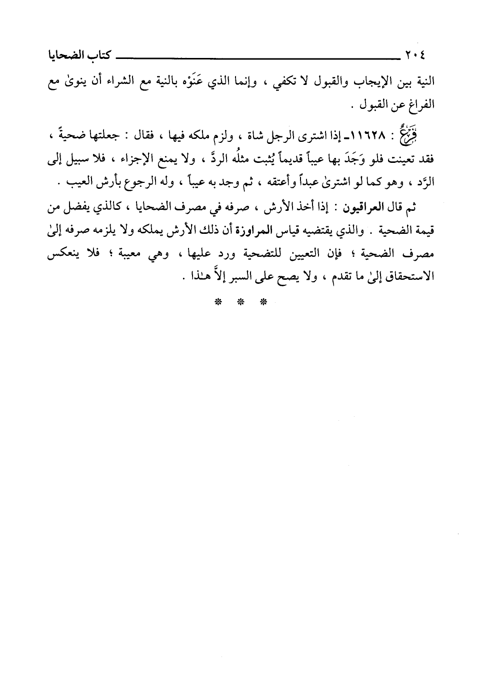 11628 - إذا اشترى الرجل شاة، ولزم ملكه فيها، فقال: جعلتها ضحيةً، فقد تعينت فلو وَجَدَ بها عيباً قديماً يُثبت مثلُه الردَّ، ولا يمنع الإجزاء، فلا سبيل إلى الرَّد، وهو كما لو اشترى عبداً وأعتقه، ثم وجد به عيباً، وله الرجوع بأرش العيب.