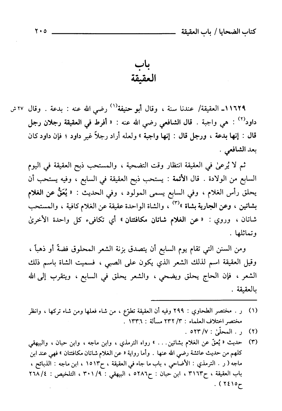 (1) ر. مختصر الطحاوي: 299 وفيه أن العقيقة تطوّع، من شاء فعلها ومن شاء تركها، وانظر مختصر اختلاف العلماء: 3/ 232 مسألة: 1336.
