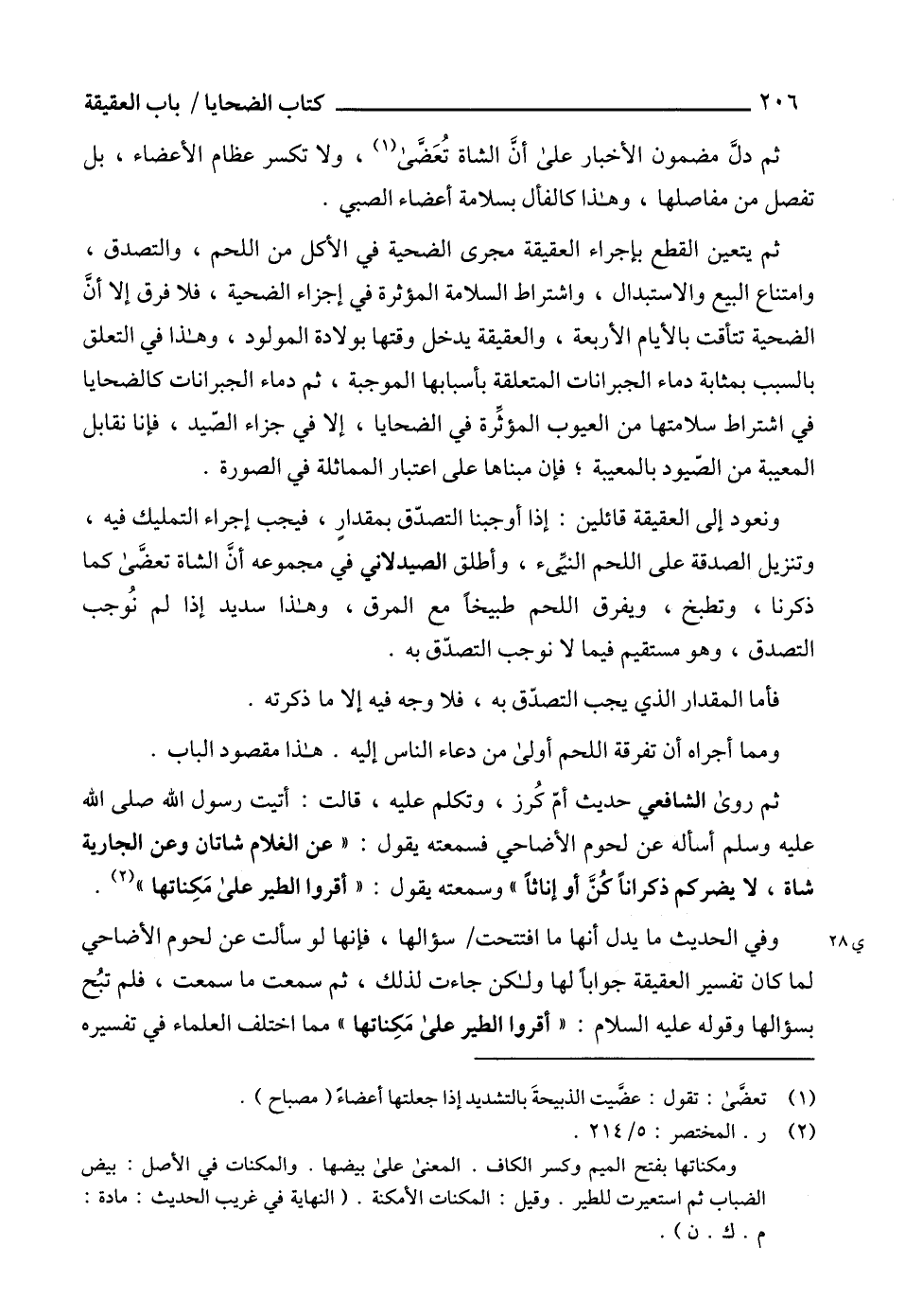 ثم دلَّ مضمون الأخبار على أنَ الشاة تُعَضَّى (1)، ولا تكسر عظام الأعضاء، بل تفصل من مفاصلها، وهذا كالفأل بسلامة أعضاء الصبي.