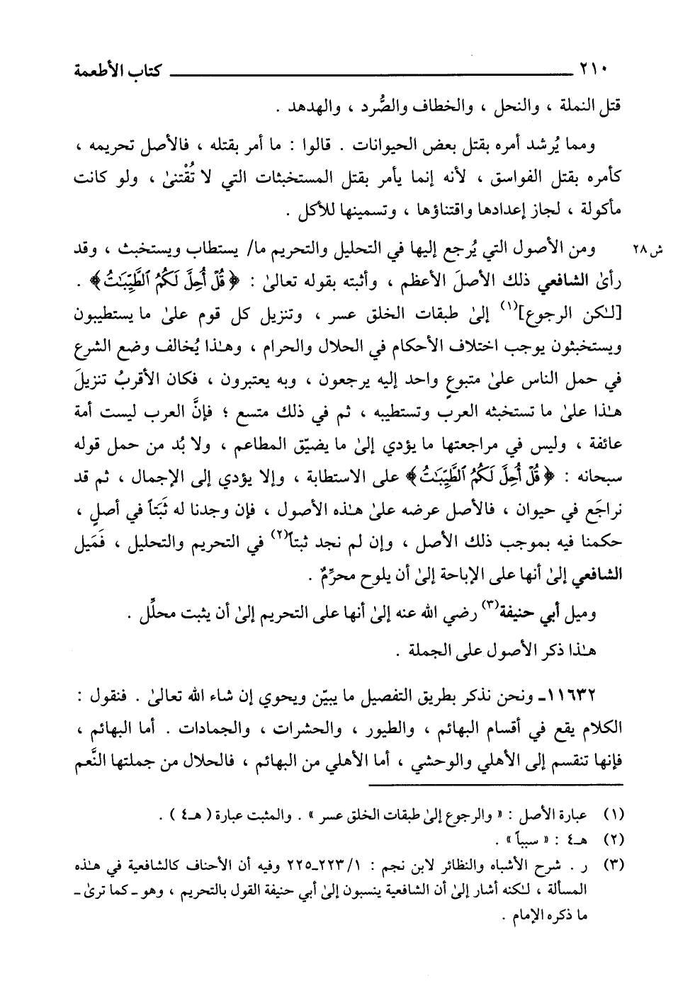 11632 - ونحن نذكر بطريق التفصيل ما يبيّن ويحوي إن شاء الله تعالى. فنقول: الكلام يقع في أقسام البهائم، والطيور، والحشرات، والجمادات. أما البهائم، فإنها تنقسم إلى الأهلي والوحشي، أما الأهلي من البهائم، فالحلال من جملتها النَّعم