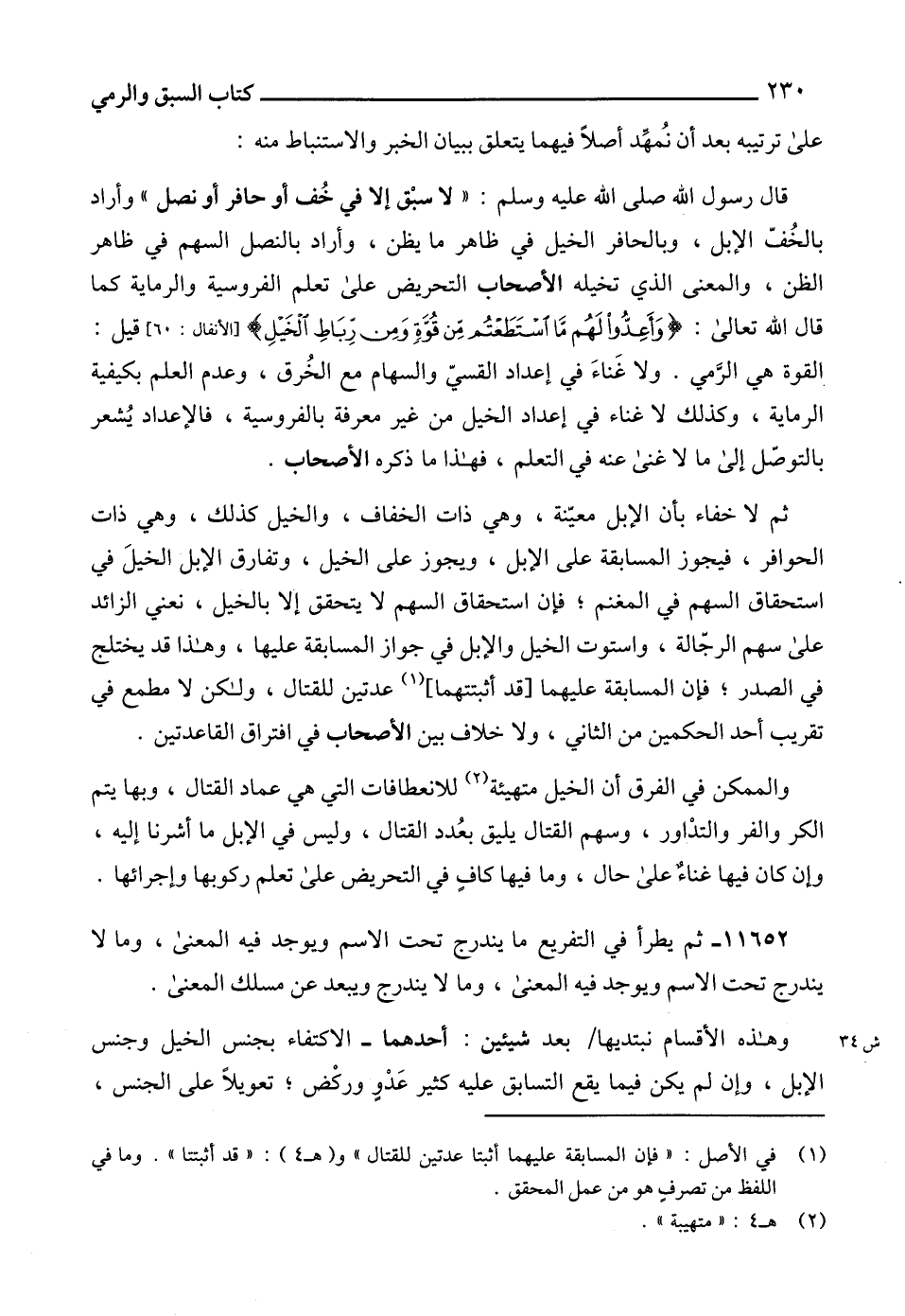 (1) في الأصل: " فإن المسابقة عليهما أثبتا عدتين للقتال " و (هـ 4): " قد أثبتتا ". وما في اللفظ من تصرفٍ هو من عمل المحقق.