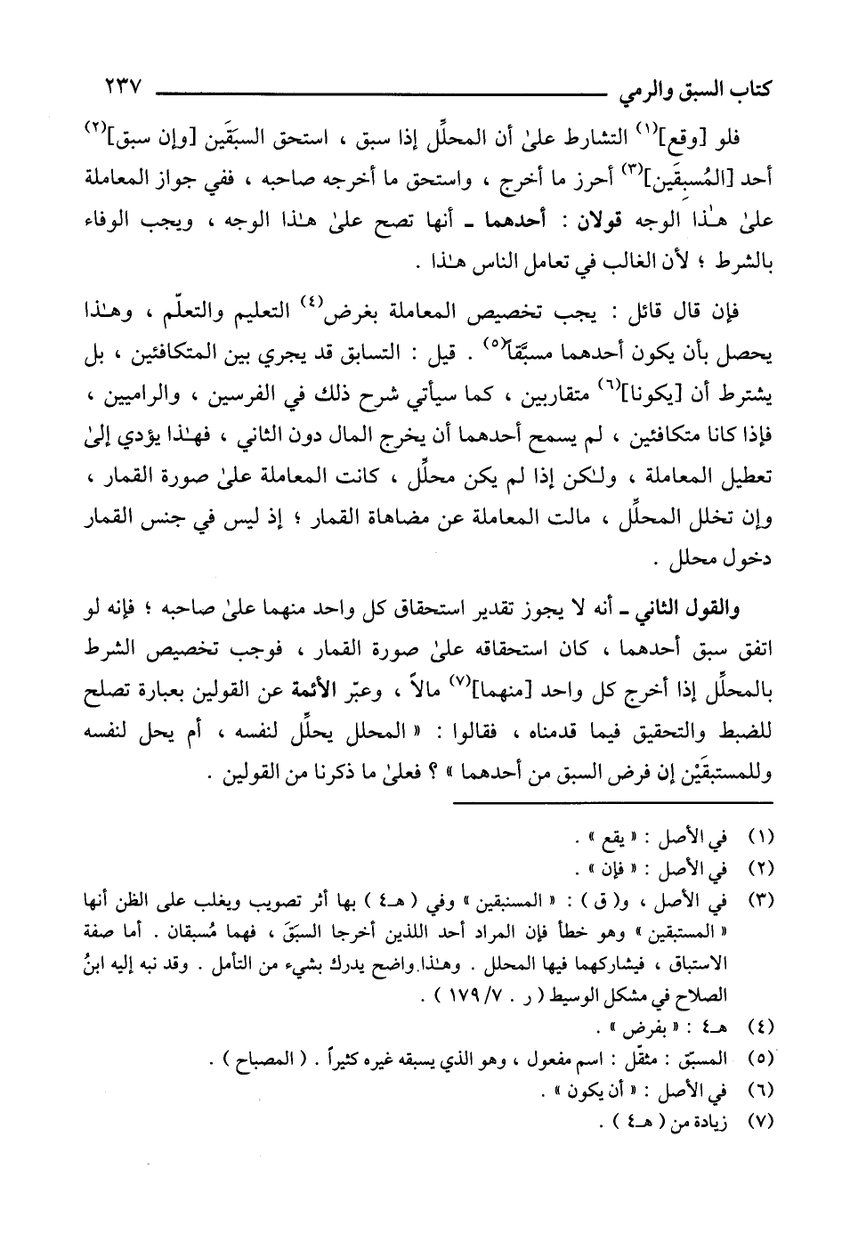 (3) في الأصل، و (ق): " المسنبقين " وفي (هـ 4) بها أثر تصويب ويغلب على الظن أنها " المستبقين " وهو خطأ فإن المراد أحد اللذين أخرجا السبَقَ، فهما مُسبقان. أما صفة الاستباق، فيشاركهما فيها المحلل. وهذا واضح يدرك بشيء من التأمل. وقد نبه إليه ابنُ الصلاح في مشكل الوسيط (ر. 7/ 179).
