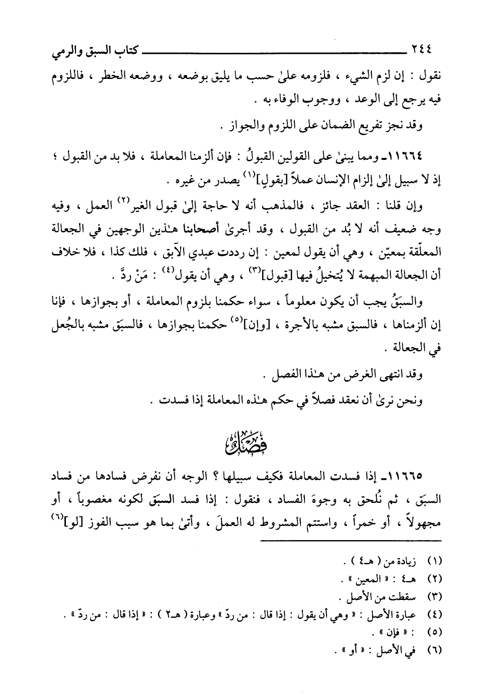 11665 - إذا فسدت المعاملة فكيف سبيلها؟ الوجه أن نفرض فسادها من فساد السبَق، ثم نُلحق به وجوهَ الفساد، فنقول: إذا فسد السبَق لكونه مغصوباً، أو مجهولاً، أو خمراً، واستتم المشروط له العملَ، وأتى بما هو سبب الفوز [لو] (6)
