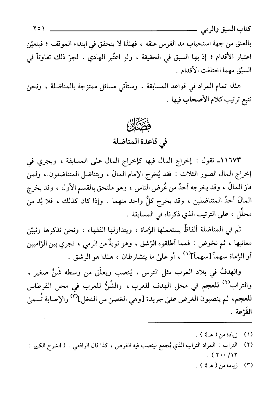 هذا تمام المراد في قواعد المسابقة، وستأتي مسائل ممتزجة بالمناضلة، ونحن نتبع ترتيب كلام الأصحاب فيها.