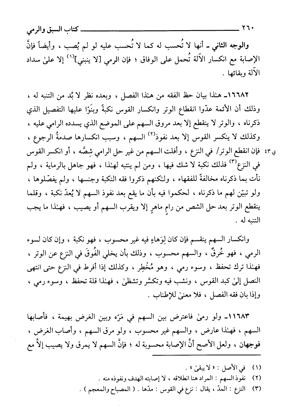 (2) نفوذ السهم: المراد هنا انطلاقه، لا إصابته الهدف ونفوذه منه.