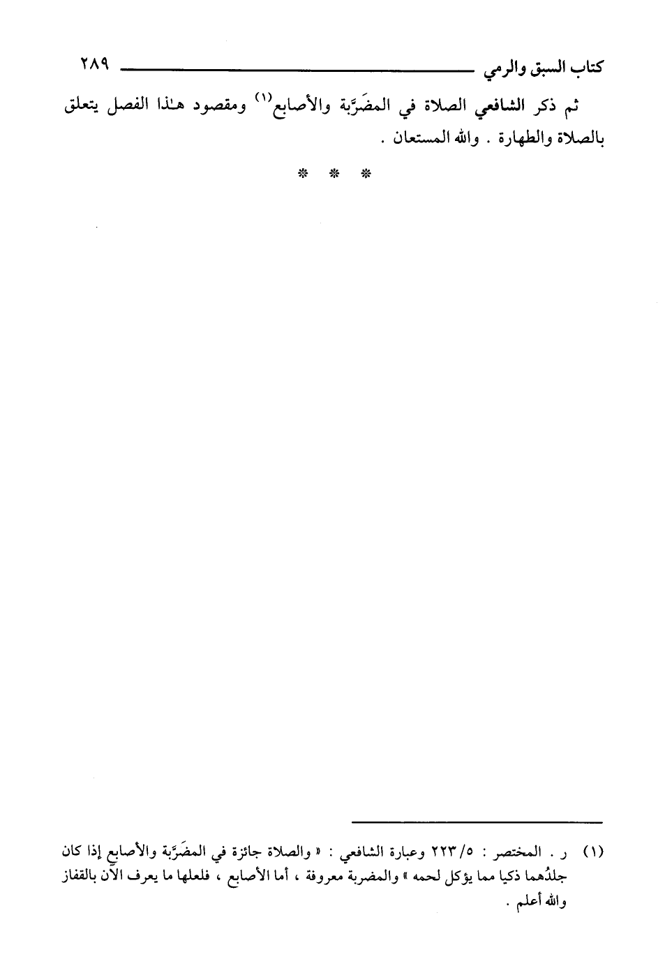 ثم ذكر الشافعي الصلاة في المضَرَّبة والأصابع (1) ومقصود هذا الفصل يتعلق بالصلاة والطهارة. والله المستعان.