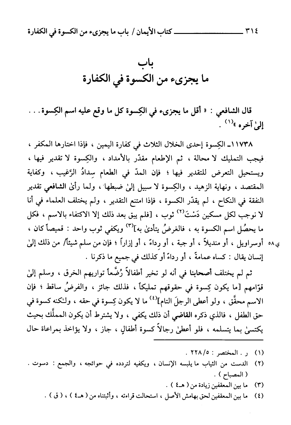 قال الشافعي: " أقل ما يجزىء في الكِسوة كل ما وقع عليه اسم الكِسوة ... إلى آخره " (1).
