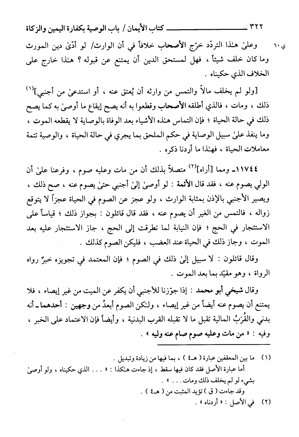 أما عبارة الأصل فقد كان فيها سقط، إذ جاءت هكذا: " ... الذي حكيناه، ولو أوصى بشيء لو لم يخلف ذلك ومات ... ".