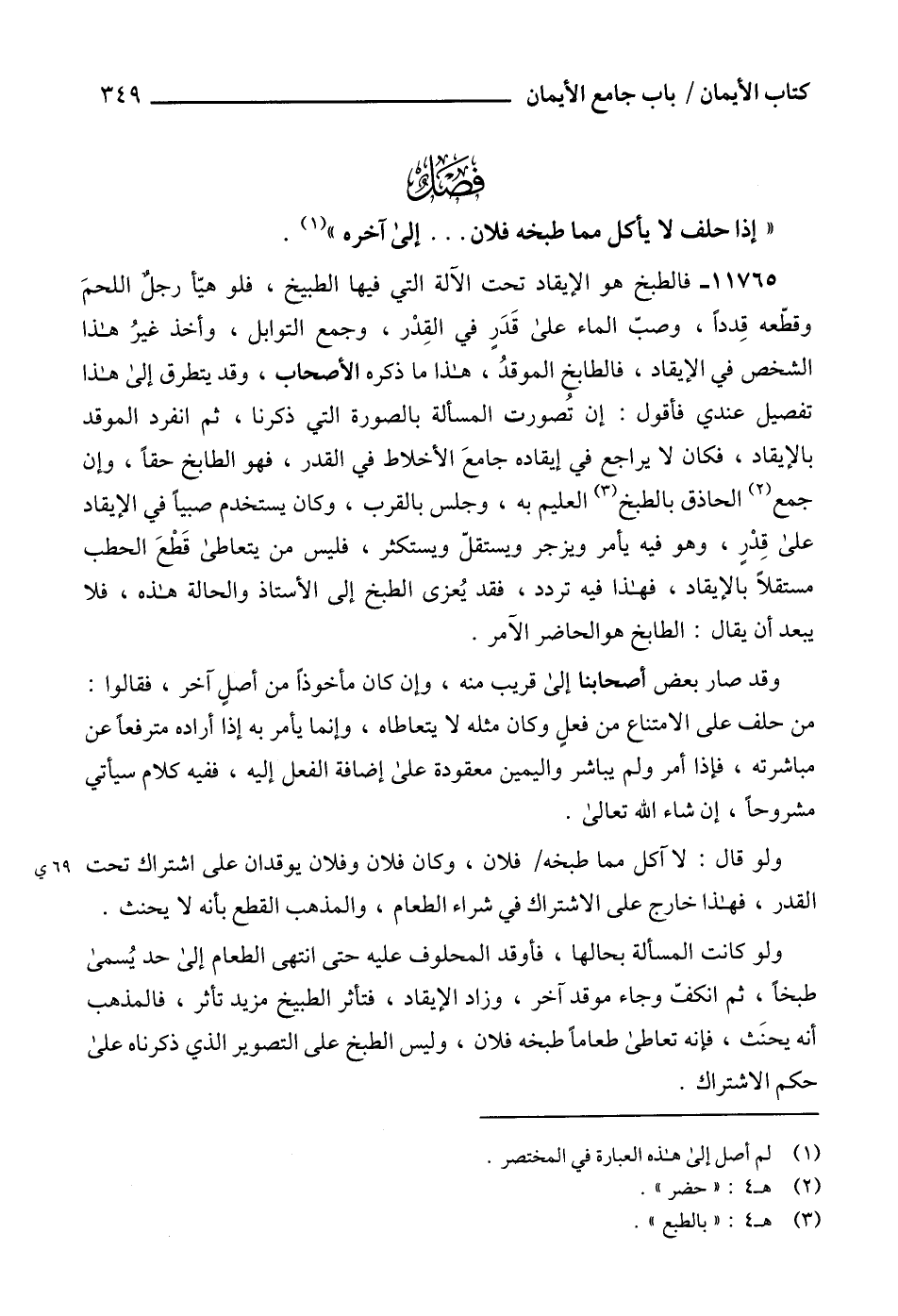 " إذا حلف لا يأكل مما طبخه فلان ... إلى آخره " (1).