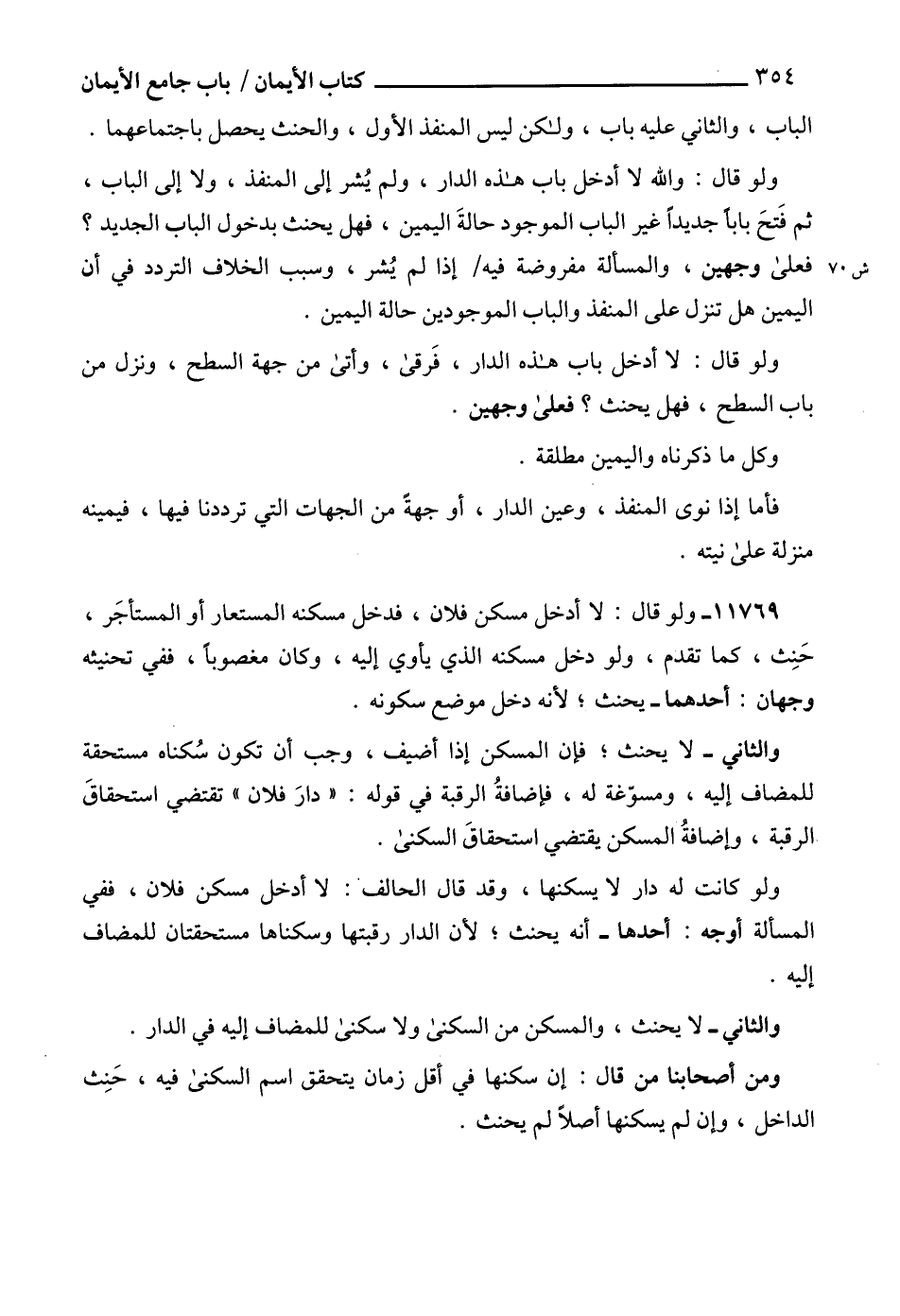 والثاني - لا يحنث، والمسكن من السكنى ولا سكنى للمضاف إليه في الدار.
