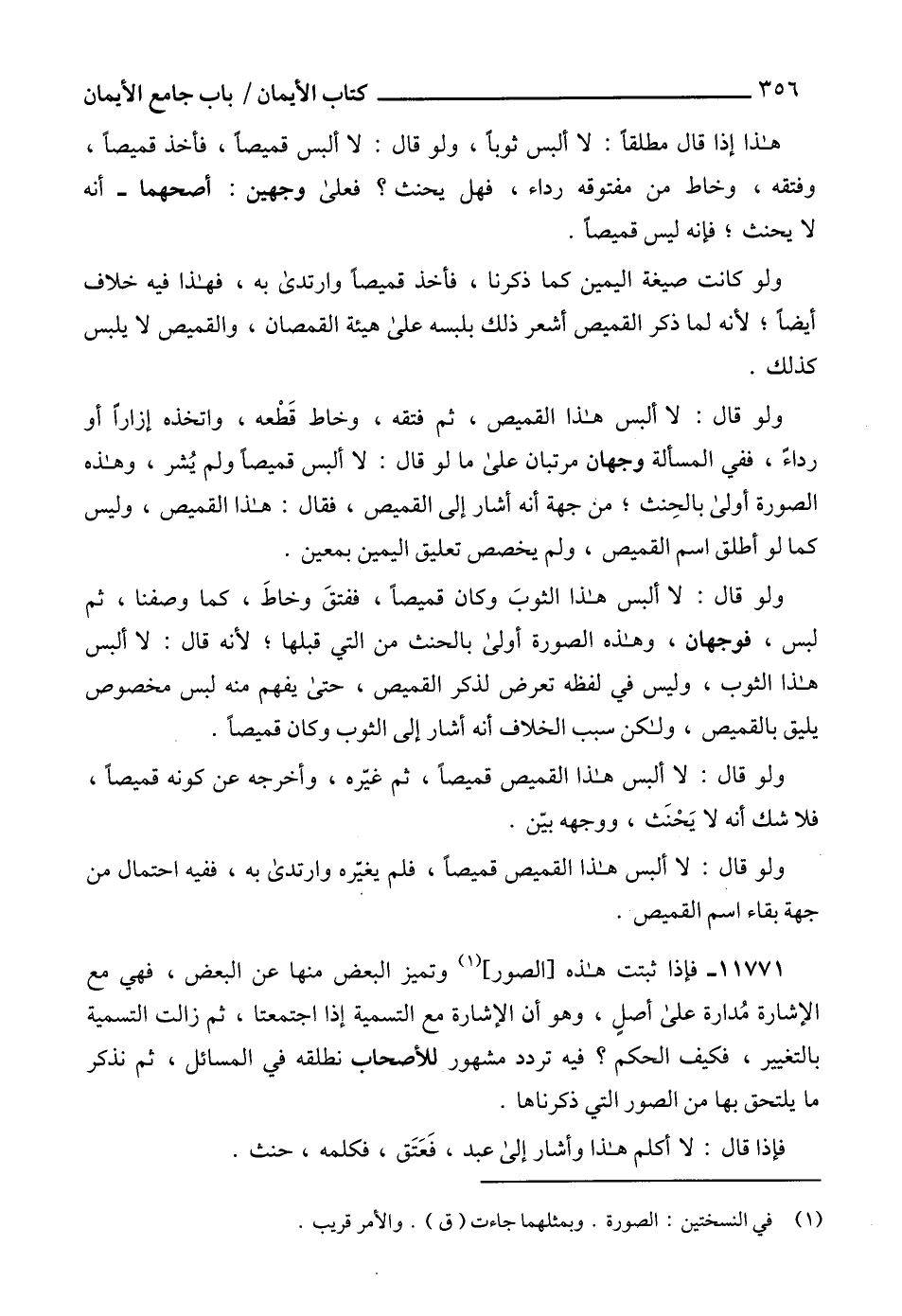 ولو قال: لا ألبس هذا الثوبَ وكان قميصاً، ففتقَ وخاطَ، كما وصفنا، ثم لبس، فوجهان، وهذه الصورة أولى بالحنث من التي قبلها؛ لأنه قال: لا ألبس هذا الثوب، وليس في لفظه تعرض لذكر القميص، حتى يفهم منه لبس مخصوص يليق بالقميص، ولكن سبب الخلاف أنه أشار إلى الثوب وكان قميصاً.