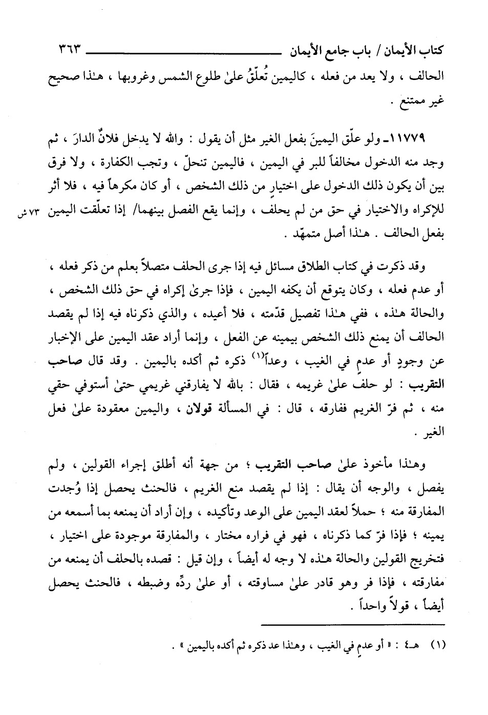 11779 - ولو علّق اليمينَ بفعل الغير مثل أن يقول: والله لا يدخل فلانٌ الدارَ، ثم وجد منه الدخول مخالفاً للبر في اليمين، فاليمين تنحلّ، وتجب الكفارة، ولا فرق بين أن يكون ذلك الدخول على اختيارٍ من ذلك الشخص، أو كان مكرهاً فيه، فلا أثر للإكراه والاختيار في حق من لم يحلف، وإنما يقع الفصل بينهما إذا تعلّقت اليمين بفعل الحالف. هذا أصل متمهّد.