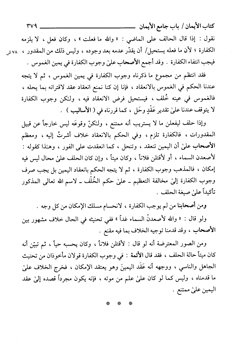 ومن الصور المعترضة أنه لو قال: لأقتلن فلاناً، وكان يحسبه حياً، ثم تبيّن أنه كان ميتاً حالة الحلف، فقد قال الأئمة: في وجوب الكفارة قولان مأخوذان من تحنيث الجاهل والناسي، ووجهه أنه عَقَد اليمينَ وهو يعتقد الإمكان، فخرج الخلاف على ما قدمناه، وليس كما لو كان على علم من موته، فإنه يكون مجرداً قصده إلى عقد اليمين على ممتنع.