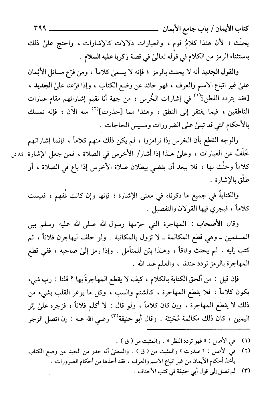 فإن قيل: من ألحق الكتابة بالكلام، كيف لا يقطع المهاجرةَ بها؟ قلنا: رب شيء يكون كلاماً، فلا يقطع المهاجرة، كالشتم والسب، وكل ما يوغر القلب بشيء من ذلك لا يقطع المهاجرة، وإن كان كلاماًً، ولو قال: لا أكلم فلاناً، فزجره على إثر اليمين، كان ذلك مكالمة مُحْنِثة. وقال أبو حنيفة (3) رضي الله عنه: إن اتصل الزجر
