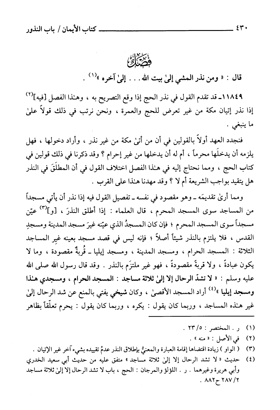 (4) حديث " لا تشد الرحال إلا إلى ثلاثة مساجد " متفق عليه من حديث أبي سعيد الخدري وأبي هريرة وغيرهما. ر. اللؤلؤ والمرجان: الحج، باب لا تشد الرحال إلا إلى ثلاثة مساجد 2/ 287 ح882.