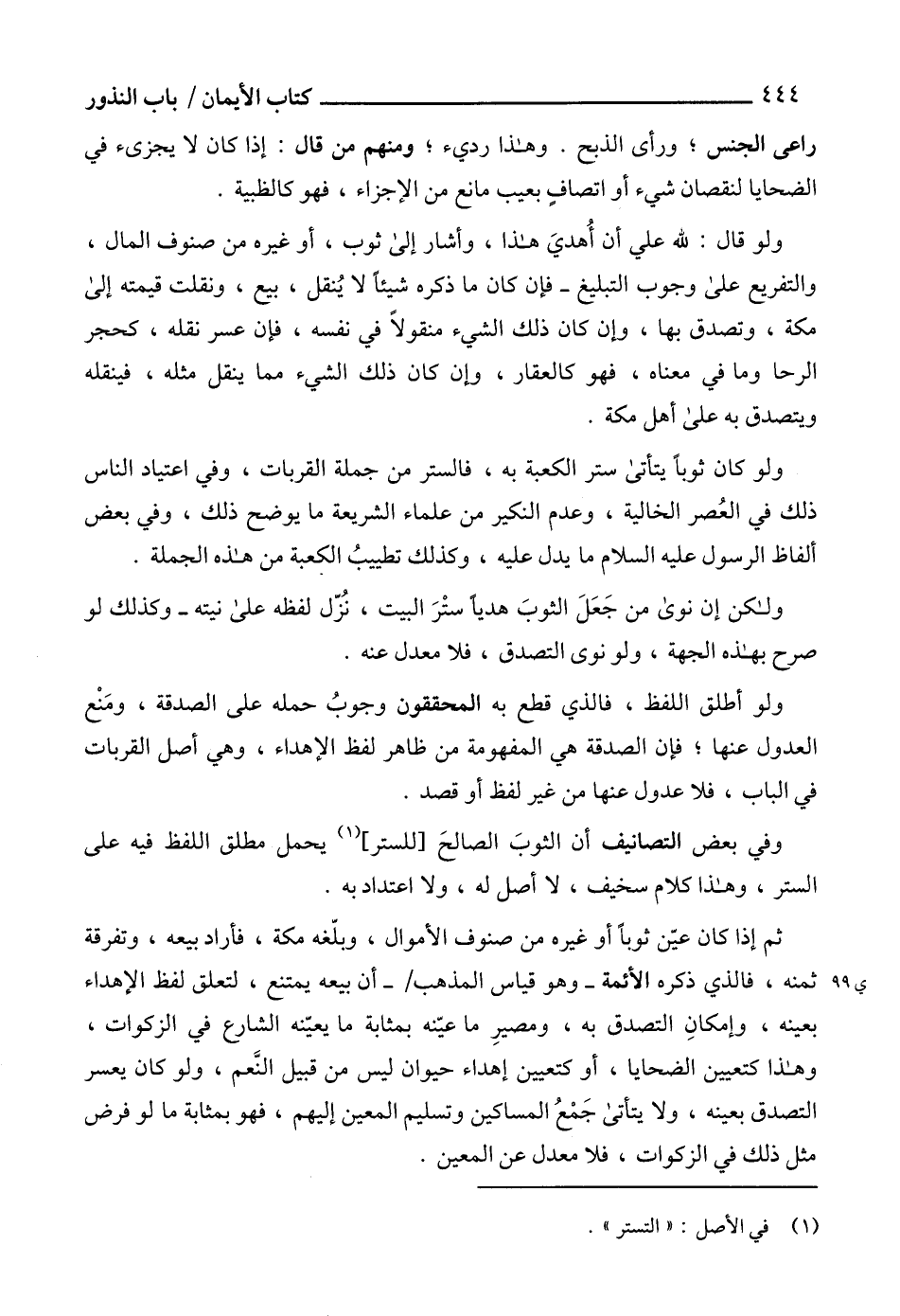 ولكن إن نوى من جَعَلَ الثوبَ هدياً ستْرَ البيت، نُزّل لفظه على نيته- وكذلك لو صرح بهذه الجهة، ولو نوى التصدق، فلا معدل عنه.