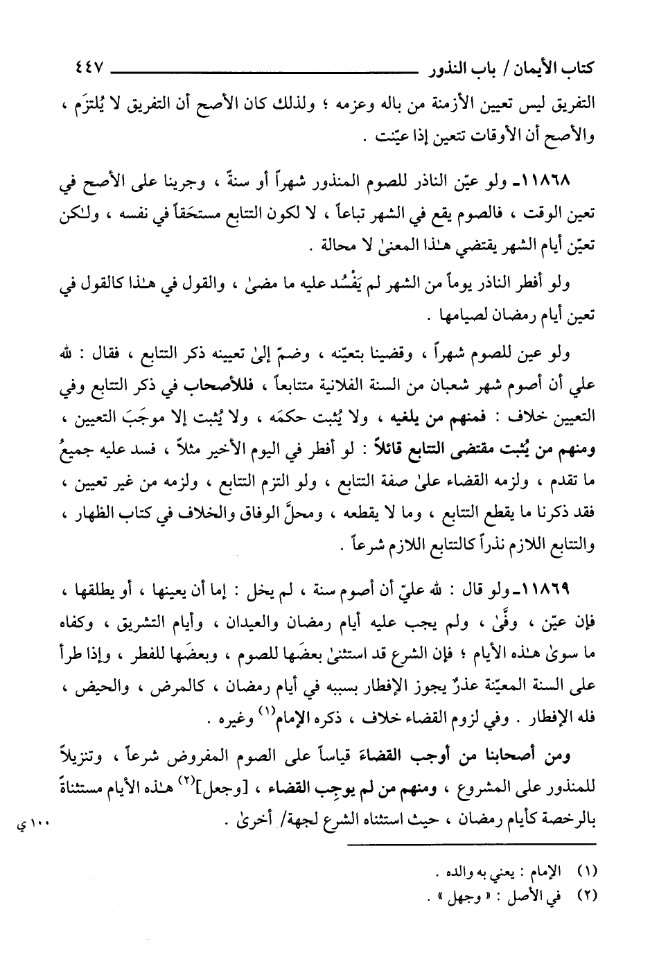 11868 - ولو عيّن الناذر للصوم المنذور شهراً أو سنةً، وجرينا على الأصح في تعين الوقت، فالصوم يقع في الشهر تباعاً، لا لكون التتابع مستحَقاً في نفسه، ولكن تعيّن أيام الشهر يقتضي هذا المعنى لا محالة.