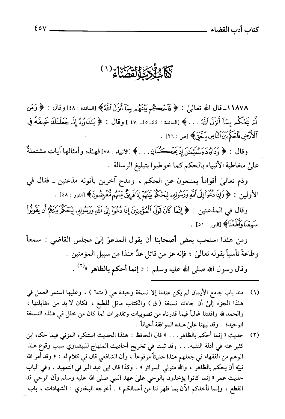 11878 - قال الله تعالى: {فَاحْكُمْ بَيْنَهُمْ بِمَا أَنْزَلَ اللَّهُ} [المائدة: 48]، وقال: {وَمَنْ لَمْ يَحْكُمْ بِمَا أَنْزَلَ اللَّهُ ... } [المائدة: 44 - 45 - 47]، وقال: {يَا دَاوُودُ إِنَّا جَعَلْنَاكَ خَلِيفَةً فِي الْأَرْضِ فَاحْكُمْ بَيْنَ النَّاسِ بِالْحَقِّ} [ص: 26].