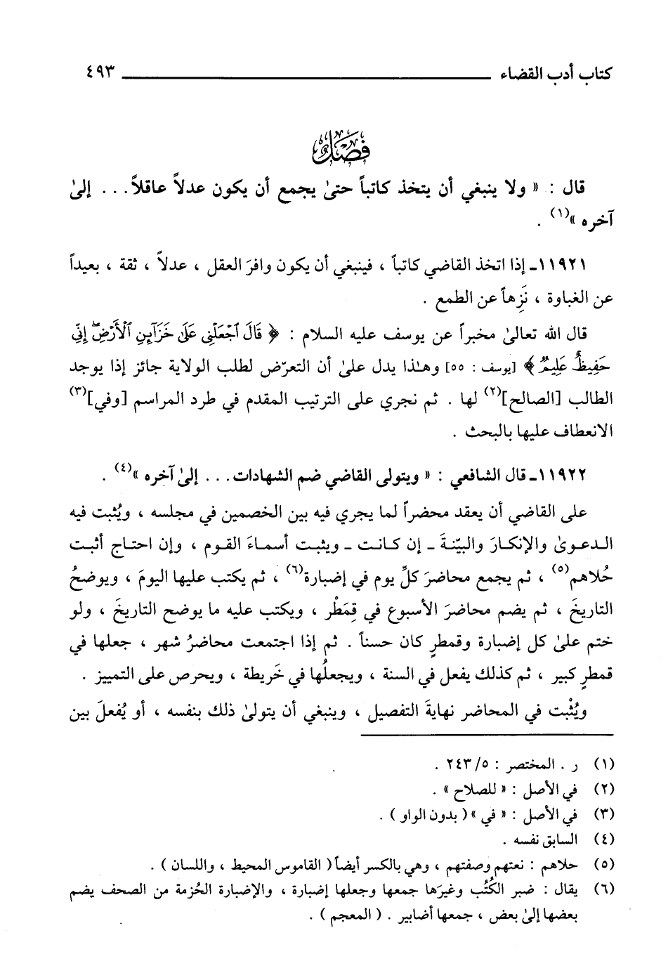 11921 - إذا اتخذ القاضي كاتباً، فينبغي أن يكون وافرَ العقل، عدلاً، ثقة، بعيداً عن الغباوة، نَزِهاً عن الطمع.