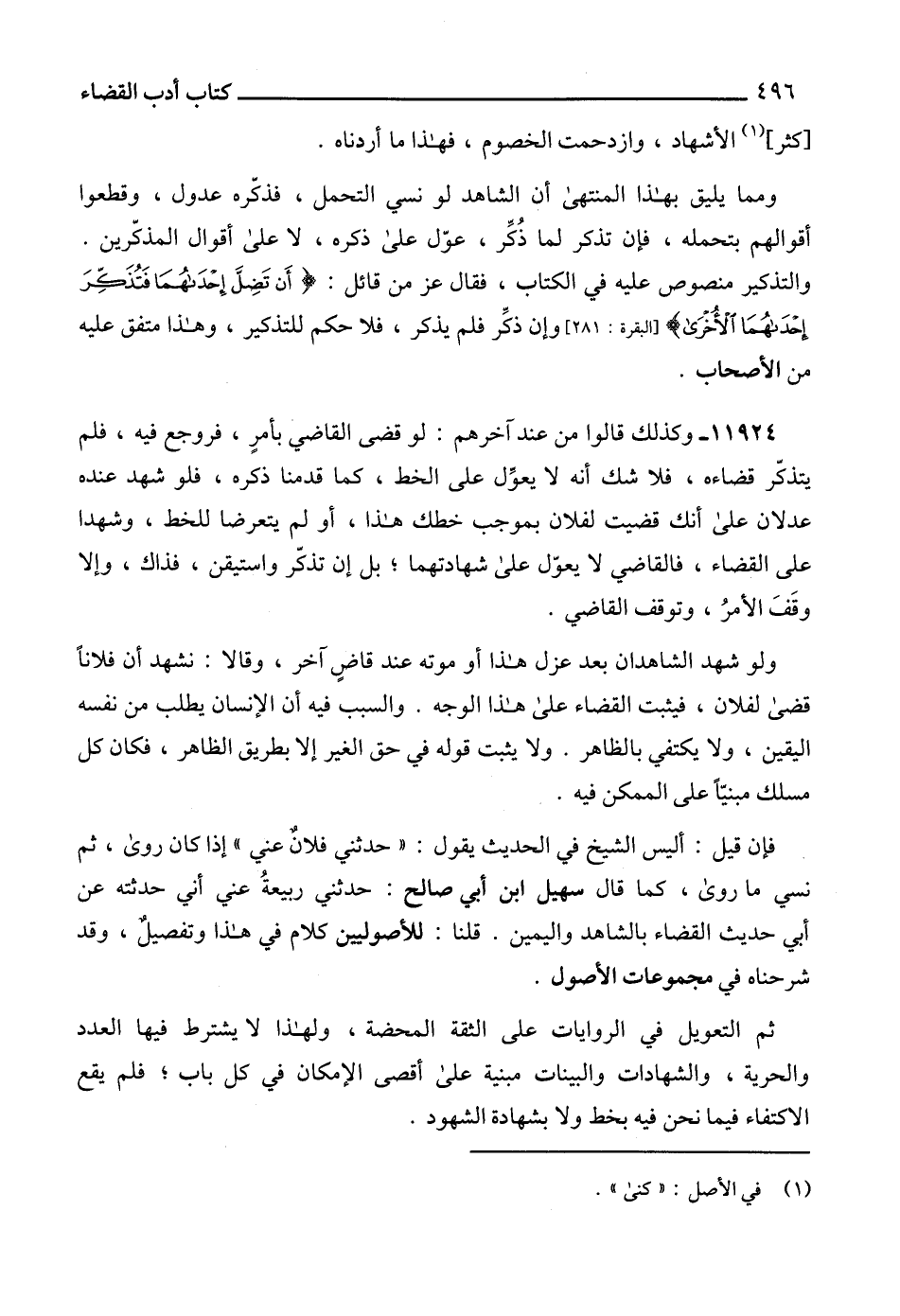 فإن قيل: أليس الشيخ في الحديث يقول: " حدثني فلانٌ عني " إذا كان روى، ثم نسي ما روى، كما قال سهيل ابن أبي صالح: حدثني ربيعةُ عني أني حدثته عن أبي حديث القضاء بالشاهد واليمين. قلنا: للأصوليين كلام في هذا وتفصيلٌ، وقد شرحناه في مجموعات الأصول.