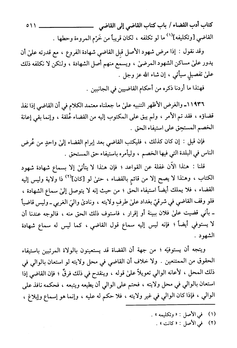 11936 - والغرض الأظهر التنبيه على ما جعلناه معتمد الكلام في أن القاضي إذا نفذ قضاؤه، فقد تم الأمر، ولم يبق على المكتوب إليه من القضاء عُلقة، وإنما بقي إعانة الخصم المستحِق على استيفاء الحق.
