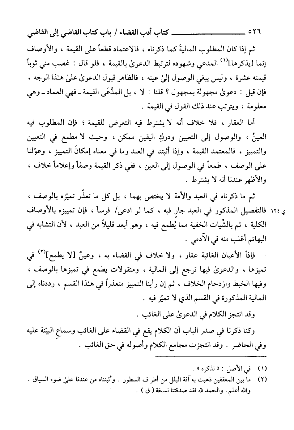 وكنا ذكرنا في صدر الباب أن الكلام يقع في القضاء على الغائب وسماعِ البيّنة عليه وفي الحاضر. وقد انتجزت مجامع الكلام وأصوله في حق الغائب.