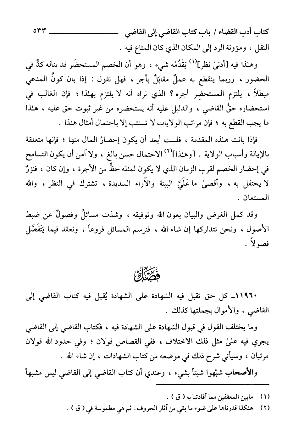 11960 - كل حق تقبل فيه الشهادة على الشهادة يُقبل فيه كتاب القاضي إلى القاضي، والأموال بجملتها كذلك.