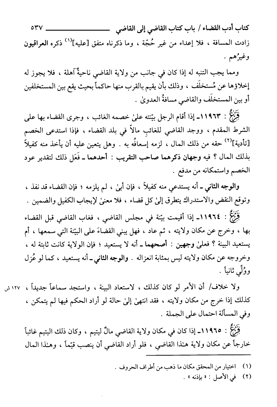 11965 - إذا كان في مكان ولاية القاضي مالٌ ليتيم، وكان ذلك اليتيم غائباً خارجاً عن مكان ولاية هذا القاضي، فلو أراد القاضي أن ينصب قيّماً، وهذا المال
