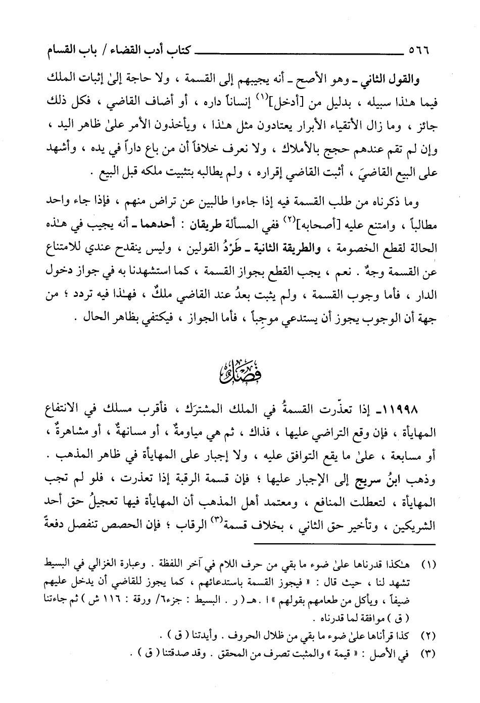 (1) هكذا قدرناها على ضوء ما بقي من حرف اللام في آخر اللفظة. وعبارة الغزالي في البسيط تشهد لنا، حيث قال: " فيجوز القسمة باستدعائهم، كما يجوز للقاضي أن يدخل عليهم ضيفاً، ويأكل من طعامهم بقولهم " ا. هـ (ر. البسيط: جزء 6/ورقة: 116 ش) ثم جاءتنا (ق) موافقة لما قدرناه.