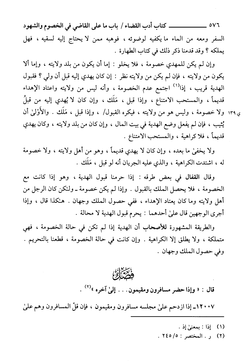 والطريقة المشهورة للأصحاب أن الهدية إذا لم تكن في حالة الخصومة، فهي متملكة، ولا يطلق إلا الكراهية. وإن كانت في حالة الخصومة، قطعنا بالتحريم.